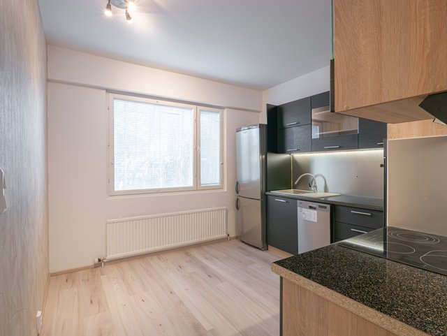 Mittavan remontin myötä koko huoneisto on päivittynyt 2000- luvulle. Pesuhuoneessa pysyy lattia kuivana suihkukaapin ansiosta. Keittiö on todella tyylikäs ja varusteltu nykyaikaisilla käytännöllisillä kodinkoneilla, kuten astianpesukoneella, keraamisella liedellä ja liesituulettimella. Asunnossa ei ole asuttu remontin jälkeen, joten suihkukaappi ja kodinkoneet ovat käyttämättömiä.