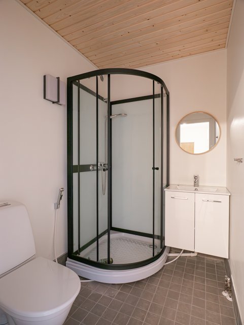 - WC-istuin, suihku, peili, allaskaappi, bidee-suihku, suihkukaappi, ja pesuallas