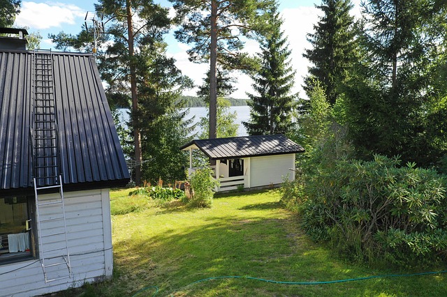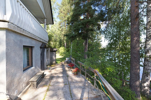 Talo sijaitsee tontilla, jossa on perinteinen suomalainen järvimaisema luo parastaan.