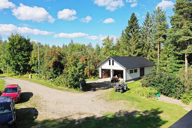 Pihapiiristä löytyy iso kahden autontalli/puuliiteri, varasto sekä vierasaitta Loviisa.