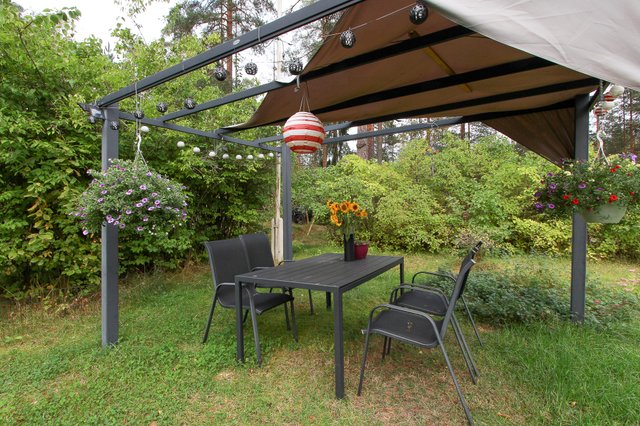 - Ilmalämpöpumppu, vaatehuoneessa pakastin, sälekaihtimet, istutukset ja jätesäiliö.