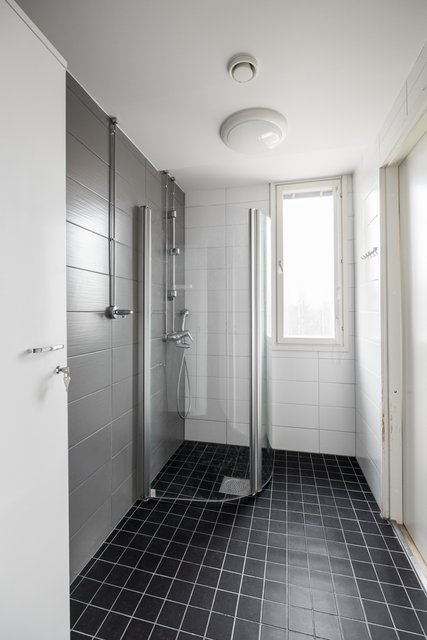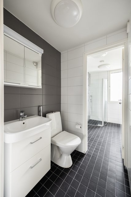 - Suihku, suihkuseinä, pesukoneliitäntä, ja lattialämmitys