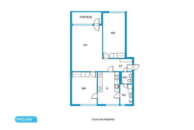 - Isännöitsijäntodistuksen mukainen, (Pinta-ala ei ole tarkistusmitattu ja todellinen pinta-ala voi olla suurempi tai pienempi, kuin ilmoitettu)