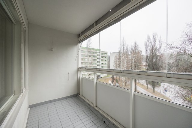 Reilun kokoiset huonetilat tuo loistavat puitteet omaan käyttöön, pariskunnalle tai vaikka pienelle perheelle. Lasitettu parveke ilta-auringon suuntaa.