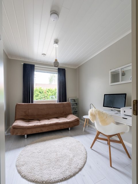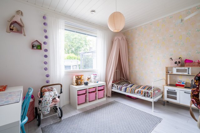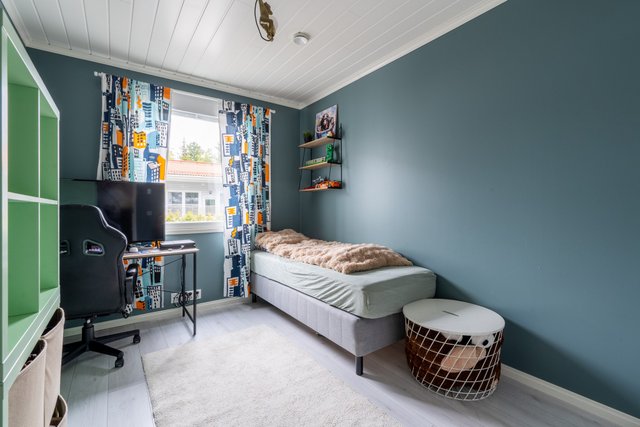 - Tässä kodissa on neljä makuuhuonetta, sekä yksi pienempi 8,4 neliön suuruinen huone, jota on nyt käytetty työhuoneena, mutta myös se täyttää makuuhuoneen vaatimukset.