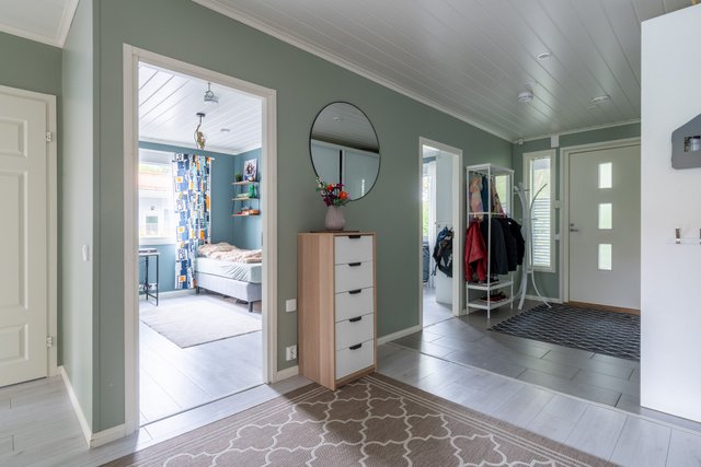 Vuonna 2017 valmistunut yksitasoinen omakotitalo tarjoaa nykyaikaiset puitteet ja reilusti tilaa isommankin perheen tarpeisiin. Tässä kodissa viimeistely on huolellisesti toteutettu ja yksityiskohdat mietitty – kokonaisuus on laadukas.