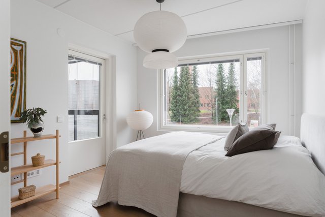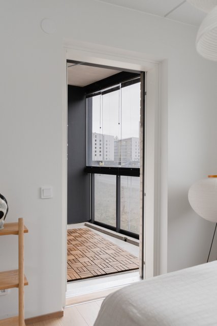 Kolme makuuhuonetta sijoittuvat fiksusti oleskelutilojen ympärille, tarjoten jokaiselle asukkaalle oman rauhallisen sopen. Päämakuuhuoneesta pääsee suoraan lasitetulle parvekkeelle ja huoneen erillinen vaatehuone tuo hyvin säilytystilaa.