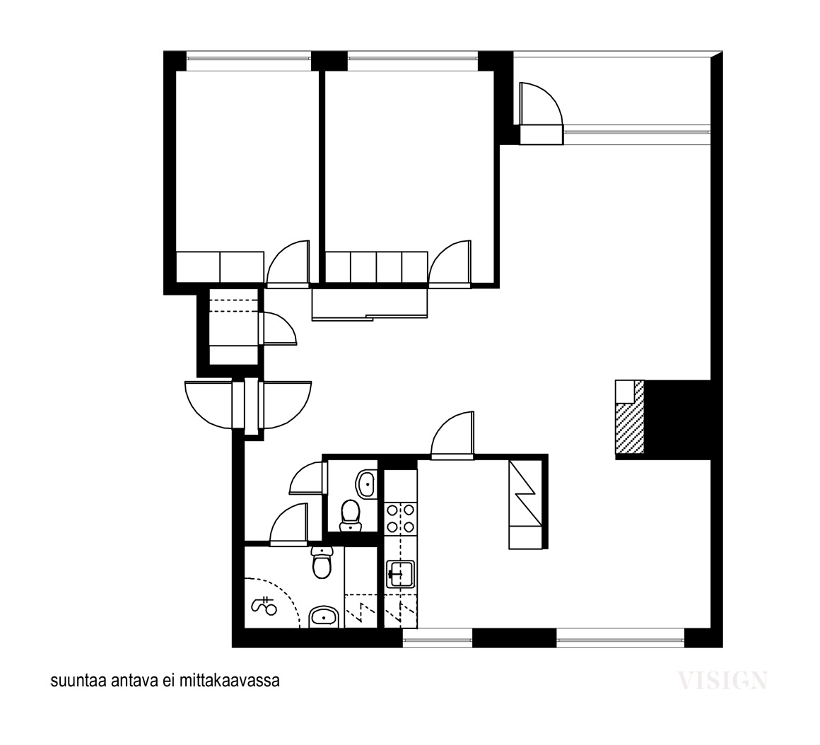 4 h, k, wc, kph, vh, lasitettu parveke (yj. 4 huonetta ja keittiö)