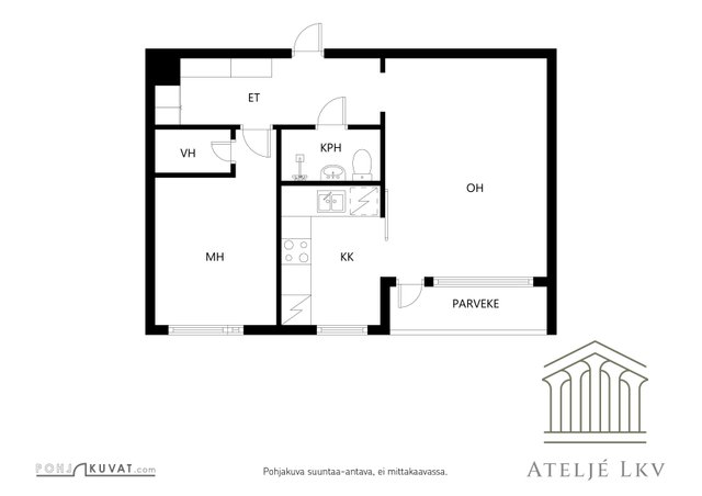 Pohjaratkaisu on selkeä ja asunnossa on reilusti säilytystilaa.