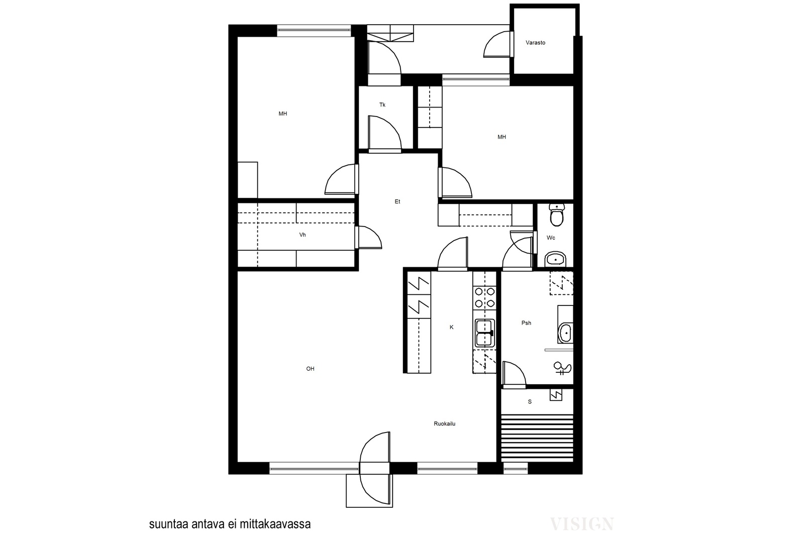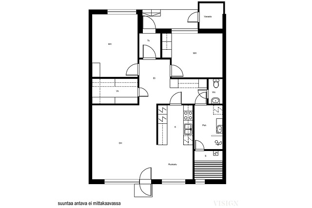 Asunnossa on tyylikäs ja nykyaikainen keittiö, valoisa ja avara olohuone, erillinen wc sekä oma sauna. Pohjaratkaisu on toimiva ja tilat ovat hyvin suunniteltuja arjen sujuvuutta ajatellen.
