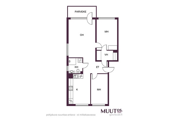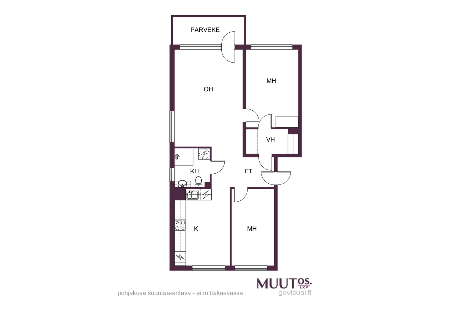 - Edellä mainittu pinta-ala saattaa tämän ikäisessä kohteessa poiketa olennaisestikin huoneiston nykyisen ja rakentamisaikaisen mittaustapojen ja standardien mukaan laskettavasta pinta-alasta. Huoneiston todellinen pinta-ala voi olla yhtiöjärjestyksessä, isännöitsijäntodistuksessa ja esitteessä mainittua pienempi tai suurempi. Hinta ei ole pinta-alaperusteinen. Yhtiöjärjestyksen mukainen huoneistoselitelmä: 3h+k.