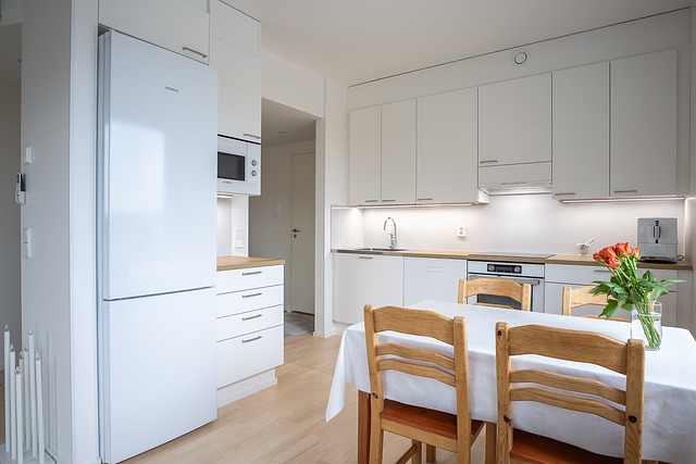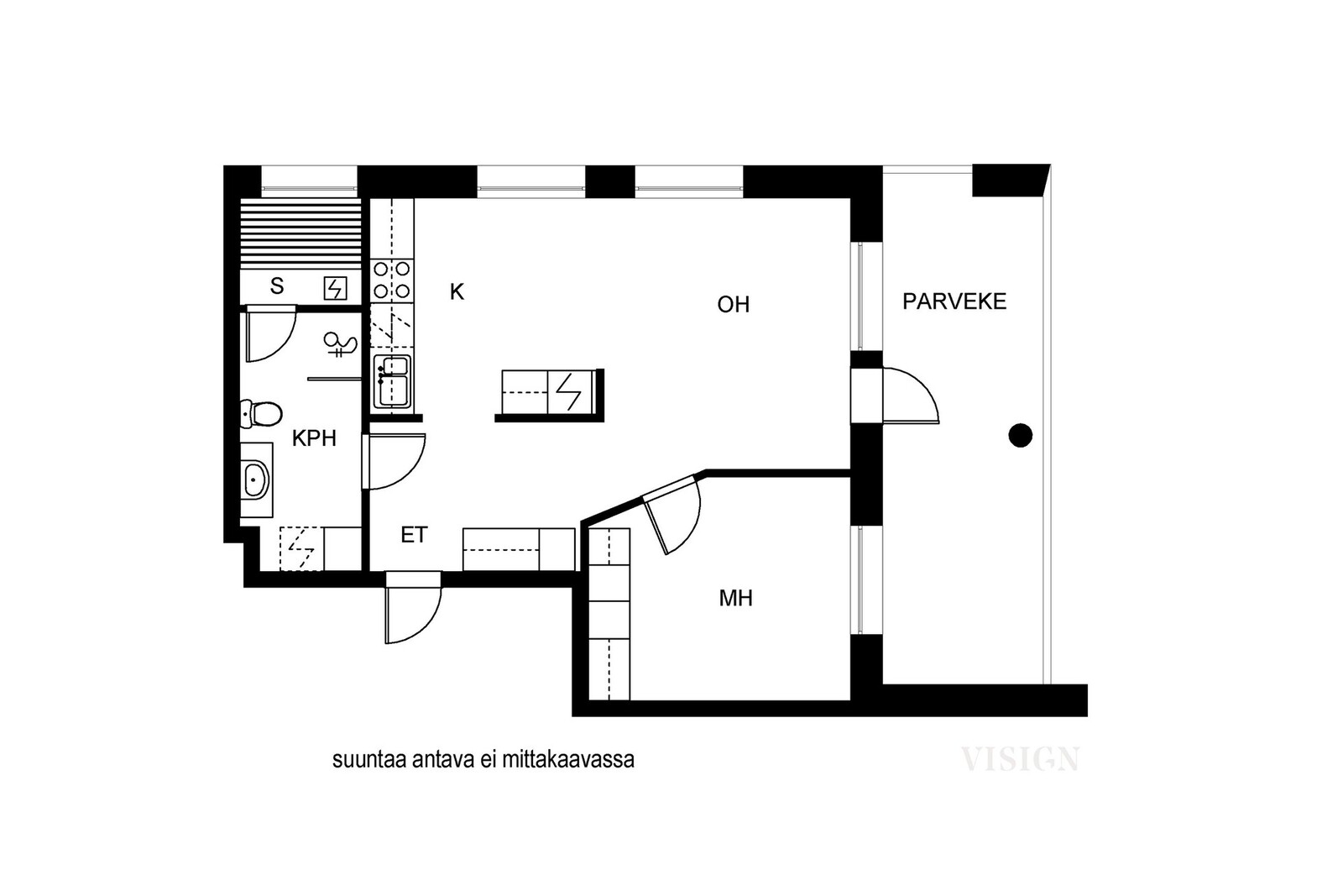 - Erillisuuni, jääkaappipakastin, mikroaaltouuni, liesi, astianpesukone, ja kiinteät valaisimet