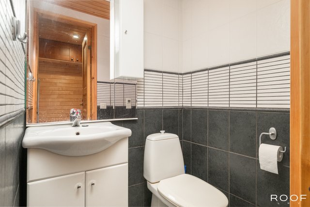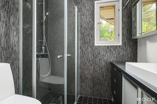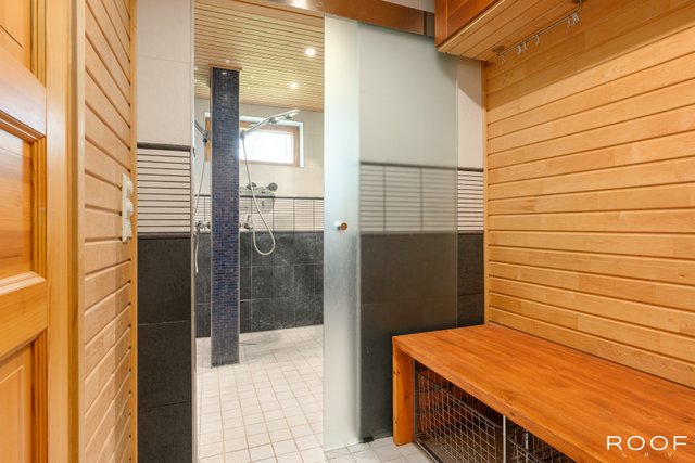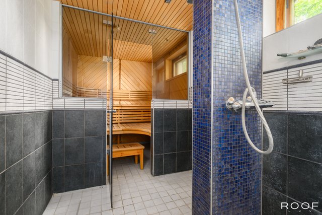 - Pesuhuone: Varustus: Kaksi suihkua, pyyhepatteri ja lattialämmitys Kylpyhuone: Varustus: Suihku, osittain kääntyvät suihkuseinät, wc-istuin, pesuallas, alalskaappi, peilikaappi, lattialämmitys.