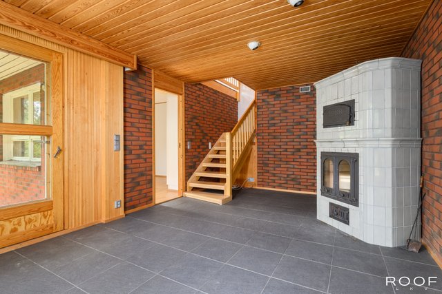 - Takkahuone: Varustus: Varaava takka leivinuunilla, lattialämmitys, käynti takapihalle. Lattia: Laatta Seinät: Sormipaneeli/tiili Eteinen: Varustus liukuovikaapisto Lattia: Parketti Seinät: Tapetti Tuulikaappi: Lattia: Laatta Seinät: Lasikuitutapetti Askarteluhuone: Varustus: Käynti ulos Ikkunoiden malli: Kolme lasiset ikkunat, joissa sisäpokassa lämpölasi kahdella lasilla ja ulkopokssa yksi lasi. Lämpölasi on selektiivilasityyppiä.