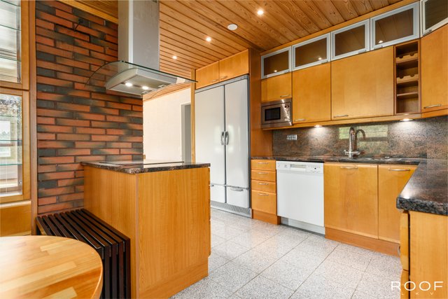 - Jääkaappipakastin (Side-by-side ), erillisuuni, liesituuletin, mikroaaltouuni, keittiösaareke, ja kiinteä radio, lattialämmitys