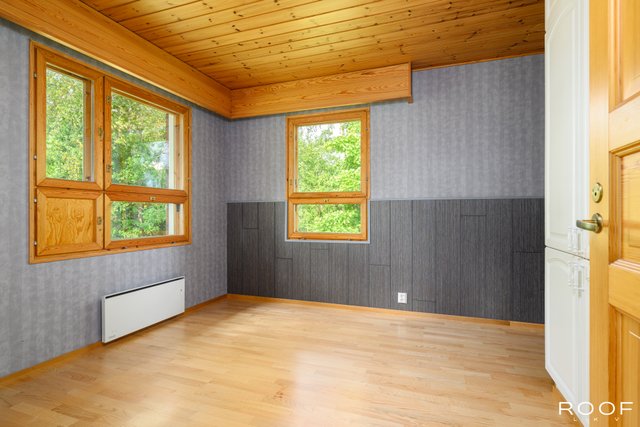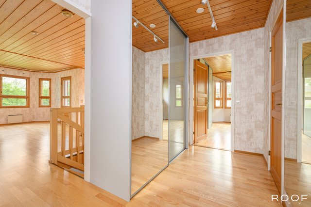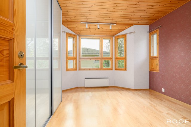 - Yläkerran makuuhuoneissa toisessa kaapisto ja toisessa kaksi liukuovikaapistoa.