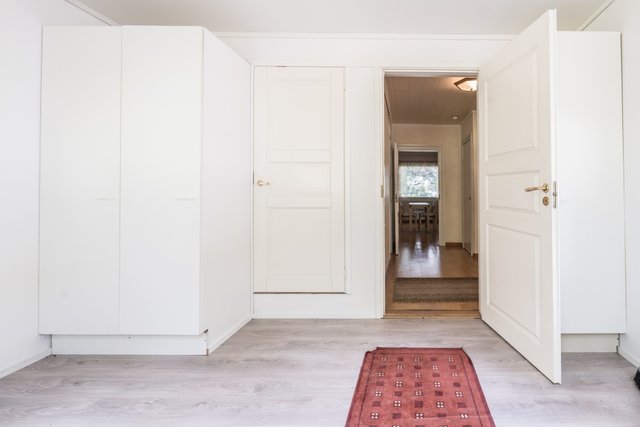 - Makuuhuoneessa on kaapisto, jossa on tanko ja koreja.