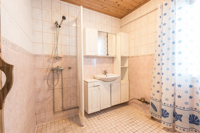 - Suihku, suihkuseinä, peilikaappi, pesuallas, allaskaappi, ja pyyhekuivain, vesimittari