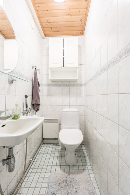 - Pesukoneliitäntä on pesuhuoneen vieressä olevassa pienessä tilassa.