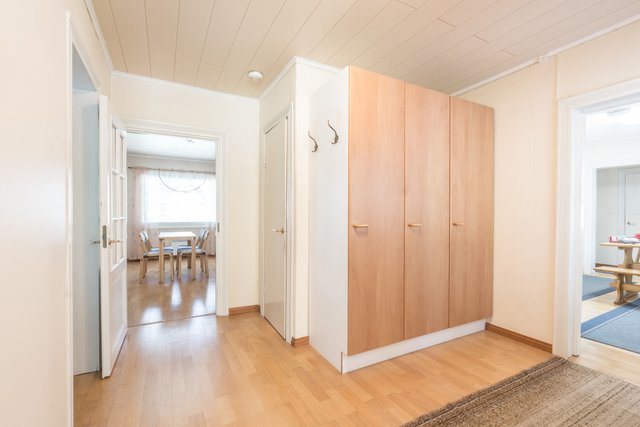 - Eteisessä on kaapisto (2 tankokaappia ja 1 hyllykaappi)