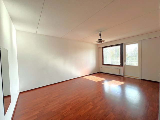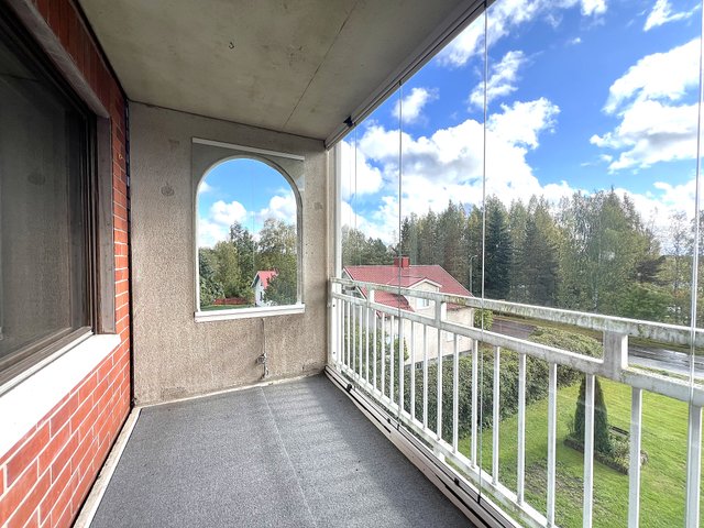 - Olohuoneesta käynti lasitetulle eteläiselle parvekkeelle.