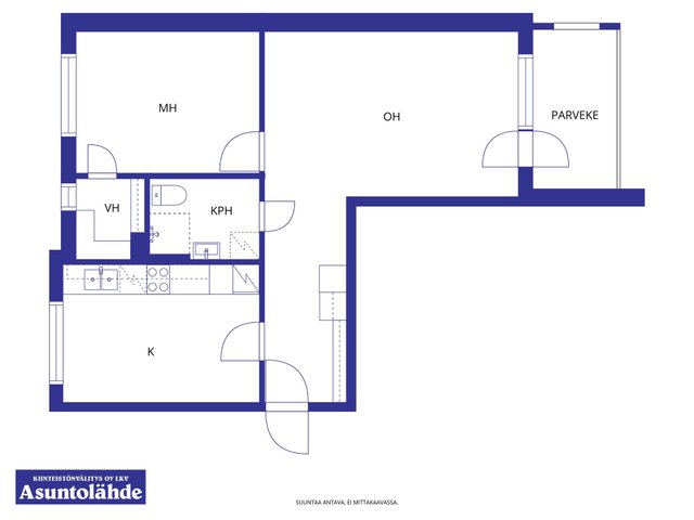 - Ei tarkistusmitattu. Pinta-alat saattavat tämän ikäisissä kohteissa (yhtiö rekisteröity ennen 01.01.1992) poiketa olennaisestikin asuinrakennusten nykyisten mittaustapojen ja standardien (SFS 5139) mukaan laskettavasta asuintilojen pinta-alasta. Pinta-ala voi siis olla edellä mainittua pienempi tai suurempi.