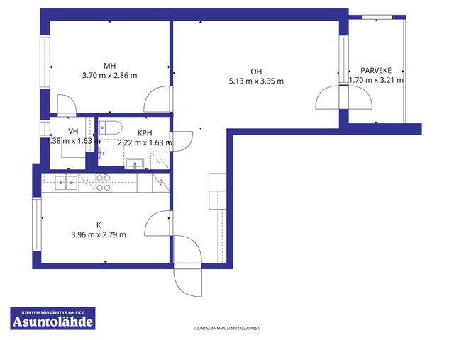 - Yhtiöjärjestyksen mukainen, Isännöitsijäntodistuksen mukainen, (Pinta-ala ei ole tarkistusmitattu ja todellinen pinta-ala voi olla suurempi tai pienempi, kuin ilmoitettu)
