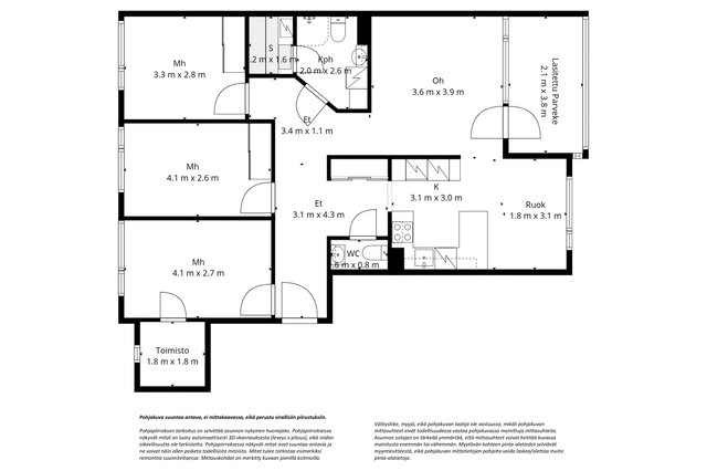 - Yhtiöjärjestyksen mukainen, Isännöitsijäntodistuksen mukainen, (Pinta-ala ei ole tarkistusmitattu ja todellinen pinta-ala voi olla suurempi tai pienempi, kuin ilmoitettu)