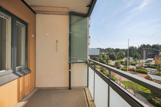 - Olohuoneesta käynti lasitetulle parvekkeelle.