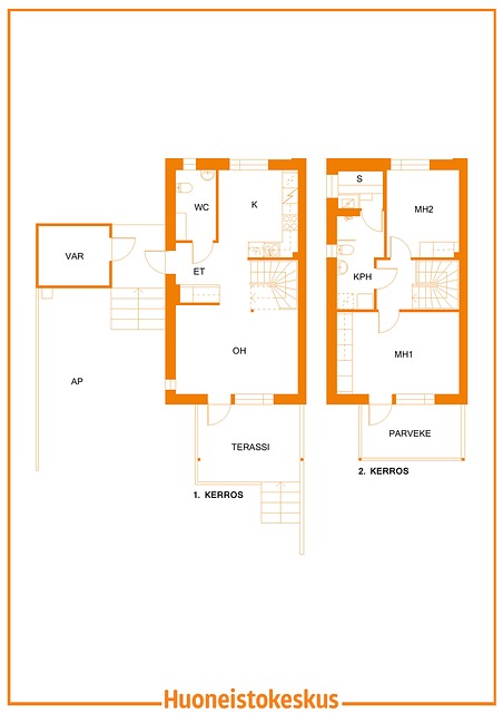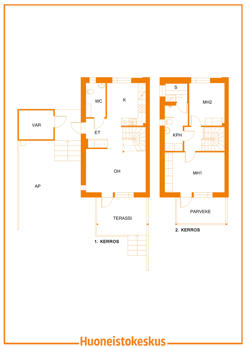 3 h, k, kph, s, ph, parveke, lasitettu terassi, piha ja varasto (yhtiöjärjestyksessä 3H+K+S)