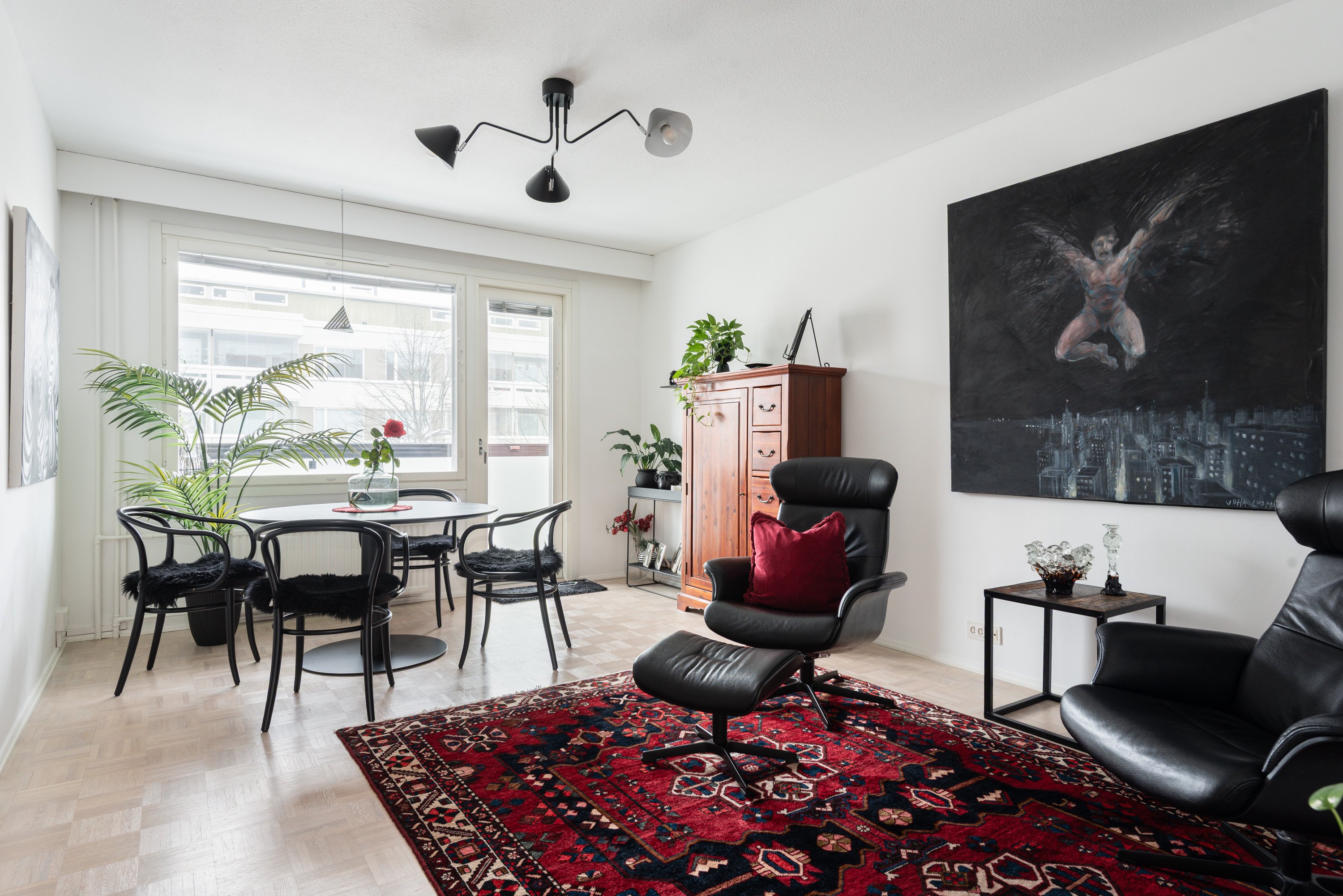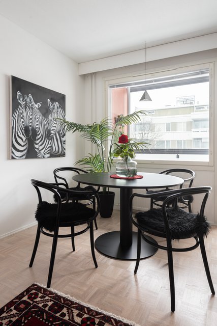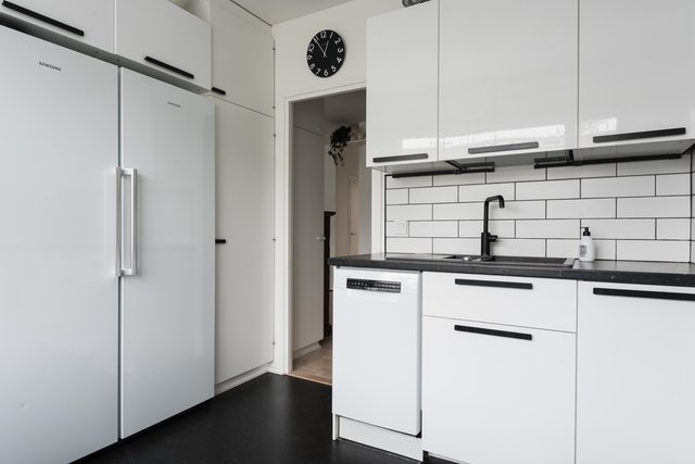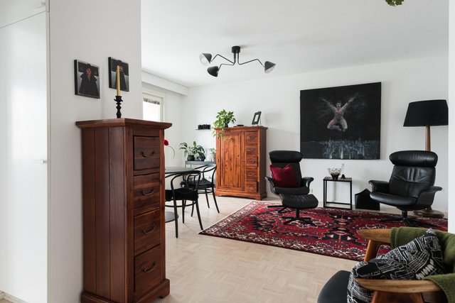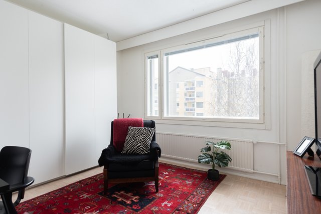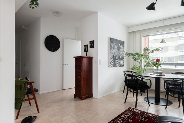 Tätä upeaa viidennen kerroksen kotia on remontoitu ajattomasti ja huolella. Keittiöstä löytyy mm. laadukkaat kodinkoneet, kivasti työ-ja säilytystilaa, ja siellä on paikka myös pienelle ruokapöydälle. Isommalle ruokailuryhmälle on tilaa olohuoneessa. Olohuoneen jatkeena on lasitettu parveke aamuauringon puolelle. Kodin kaksi makuuhuonetta sijoittuvat käytännöllisesti eri puolelle asuntoa. Kylpyhuone on kompakti, mutta siellä hoituu kaikki tarvittava, Asunnossa on erillinen wc, sekä vaatehuone.