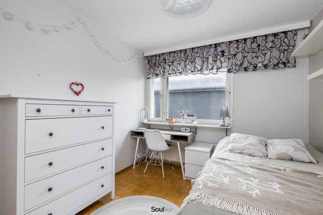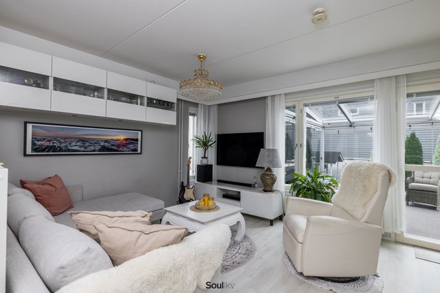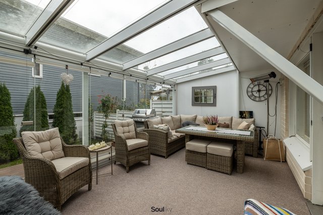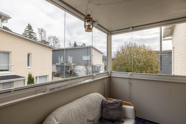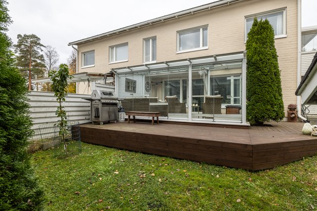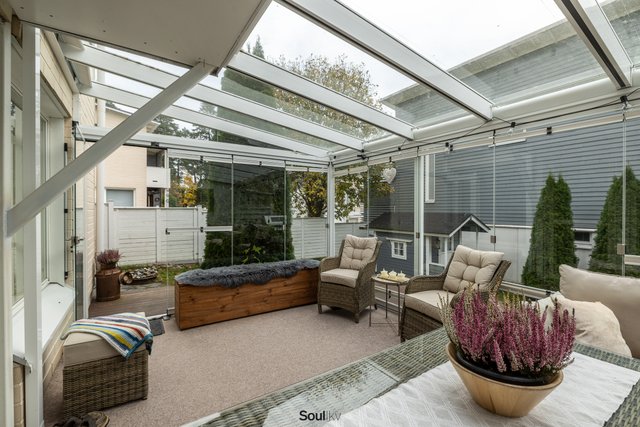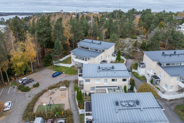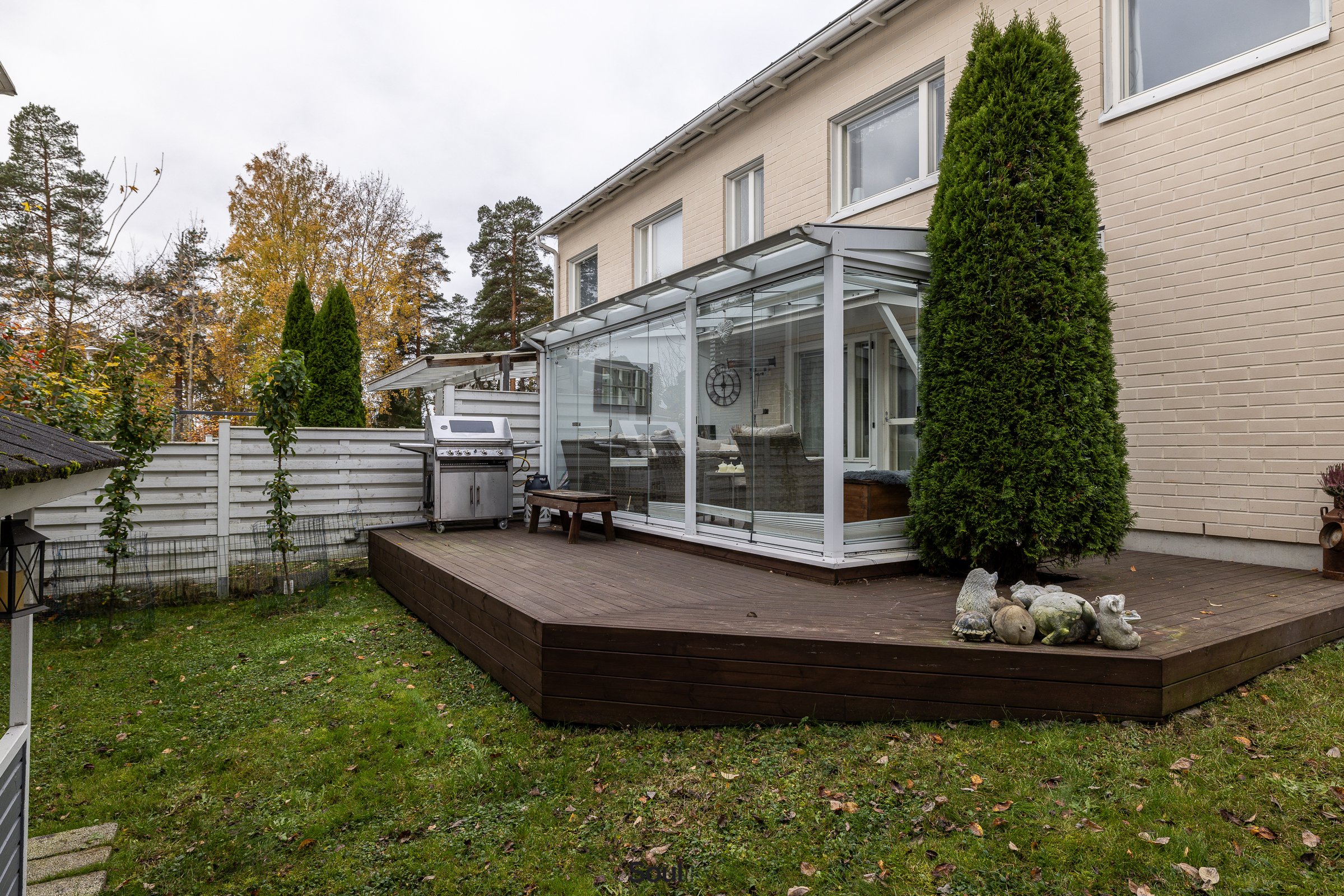Kahdessa kerroksessa sijaitseva kolmio yhdistää omakotitalomaista asumisviihtyvyyttä ja yhtiömuotoisen kodin helppoutta. Asunto sijaitsee omalla tontilla, ja taloyhtiö on siirtynyt maalämpöön, mikä tekee asumisesta sekä ekologista että kustannustehokasta. Suuri aidattu piha ja lasitettu terassi tarjoavat viihtyisät puitteet oleskeluun ja vapaa-aikaan.