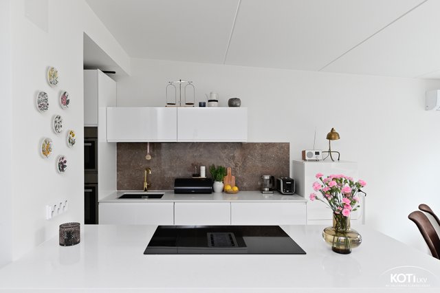 - Upea v. 2021 täysin uusittu valkoinen keittiö kivitasoin.