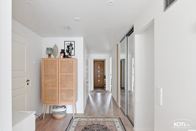 Sijainti on erinomainen: vain lyhyen kävelymatkan päässä löytyy Kauppakeskus Lippulaiva monipuolisine palveluineen, ja liikenneyhteydet ovat sujuvat niin bussilla, metrolla kuin autollakin. Alueella on myös hyvät koulut ja päiväkodit, mikä tekee tästä kodista ihanteellisen vaihtoehdon perheille.