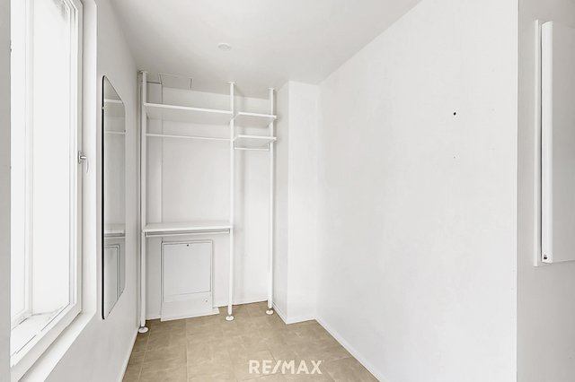 - Säilytystilaa on yhdistetyissä makuuhuoneissa, toisessa liukuovikaapisto ja toisessa vaatehuone. Lisäksi huoneiston käytössä on erillinen kellarivarasto, joka tarjoaa lisätilaa esimerkiksi kausittaisille tavaroille.
