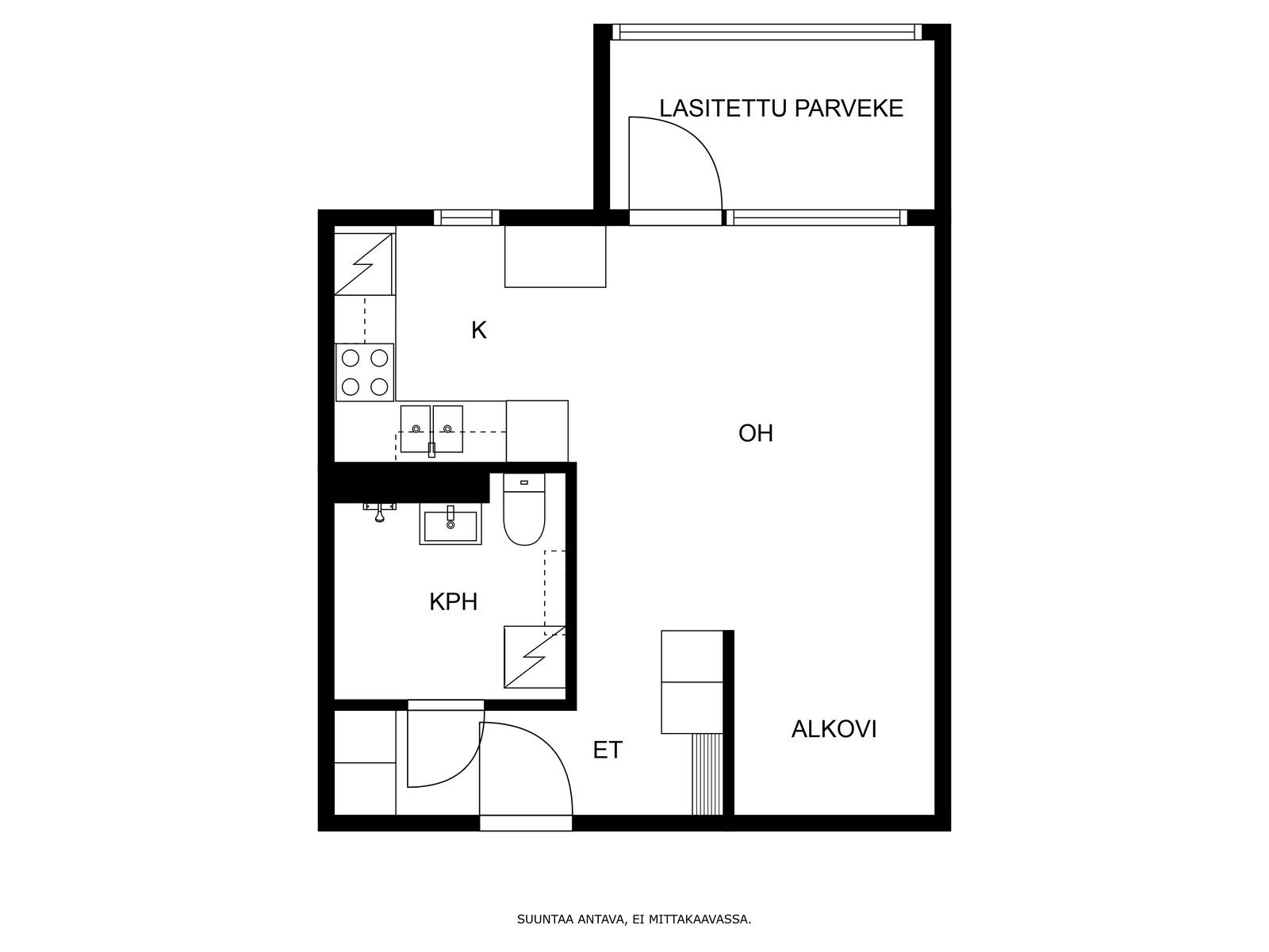 Nyt edullisesti parvekkeellinen yksiö, jossa neliöt kohdillaan.
