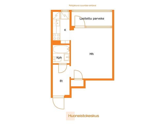 1 h, kk, kph, lasitettu parveke (Yj. 1 h+kk)