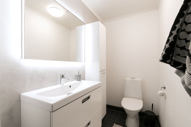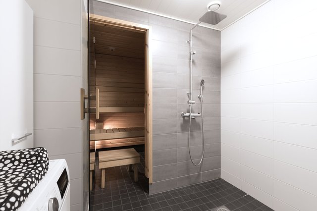 - Lattialämmitys, pesukoneliitäntä, ja suihku