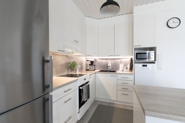 - Jääkaappipakastin, liesituuletin, ja astianpesukone