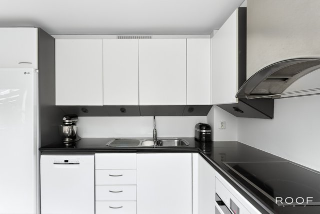 - Varustus: jääkaappi/pakastin (jääpalakoneella), liesikupu, mikroaaltouuni, astianpesukone (Bosch 1 v), kiinteät valaisimet, liesituuletin / suodatin. Liesi: keraaminen (Bosch), erillisuuni (Bosch). Työtasot: kivi Lattia: parketti Seinät: maalattu.