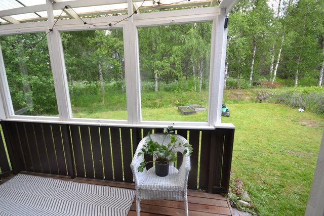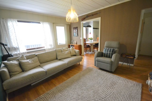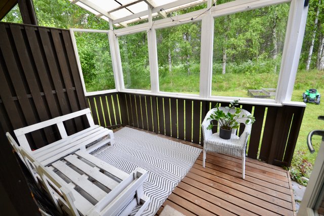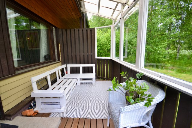 - Valoisasta olohuoneesta käynti suojaisalle terassille.