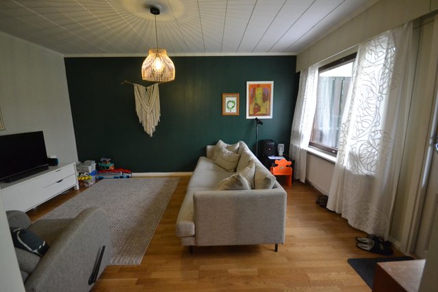 Aivan ihastuttava saunallinen kolmio kivalla katetulla terassilla ja suojaisalla pihalla. Kodikas rivitalohuoneisto suositulta asuinalueelta, koulun ja palvelujen läheisyydessä.