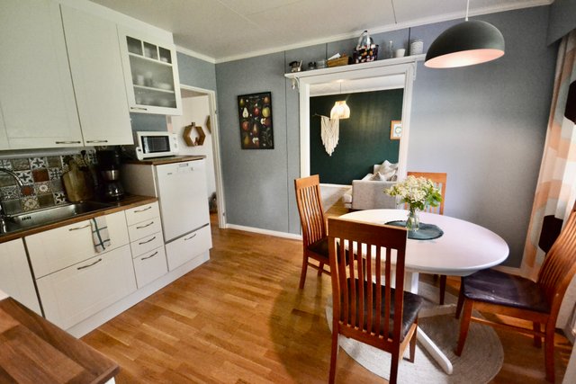 Upea asunto todella toimivalla pohjaratkaisulla ja kunnoltaan muuttovalmis. Kodikkaassa keittiössä on runsaasti kaappitilaa ja valoisa paikka ruokapöydälle.