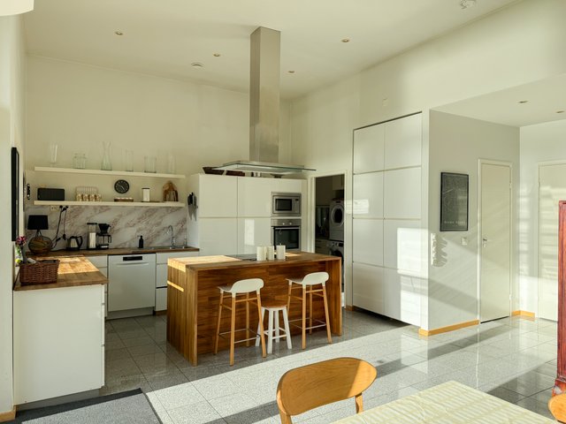 - Arkieteisestä on kulku suoraan kodinhoitohuoneeseen.