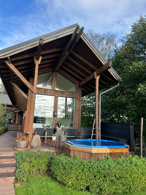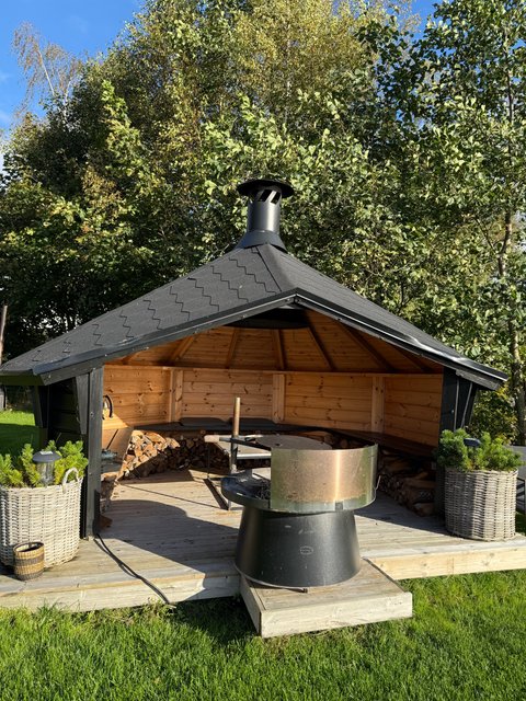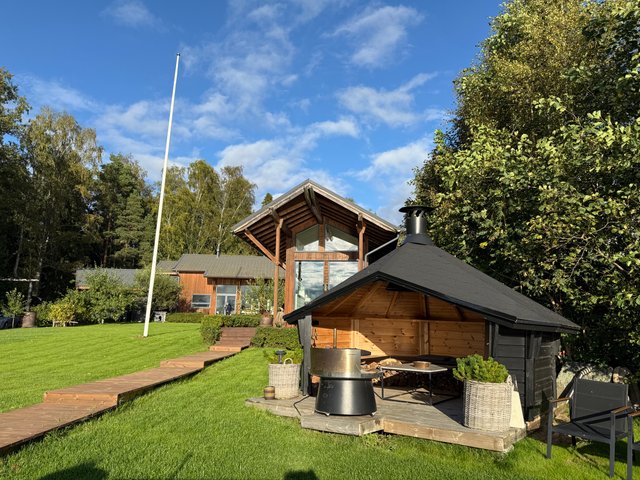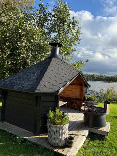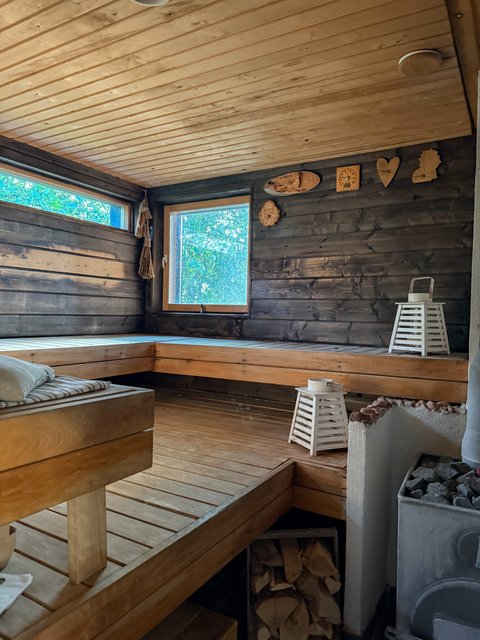 - Puulämmitteinen, upea sauna sijaitsee saunarakennuksessa.