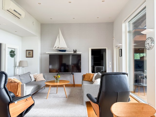 Avaat aamun valjetessa keittiösi lasipariovet auki terassille. Kädessäsi on höyryävä kuppi kahvia. Suljet silmäsi ja annat lempeän merituulen koskettaa kasvojasi. Ihailet edessäsi avautuvaa näkymää auringossa kimmeltävälle merelle. Tervetuloa kotiin.