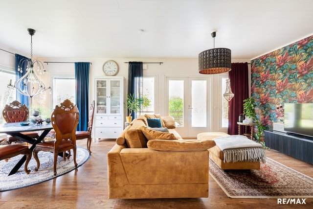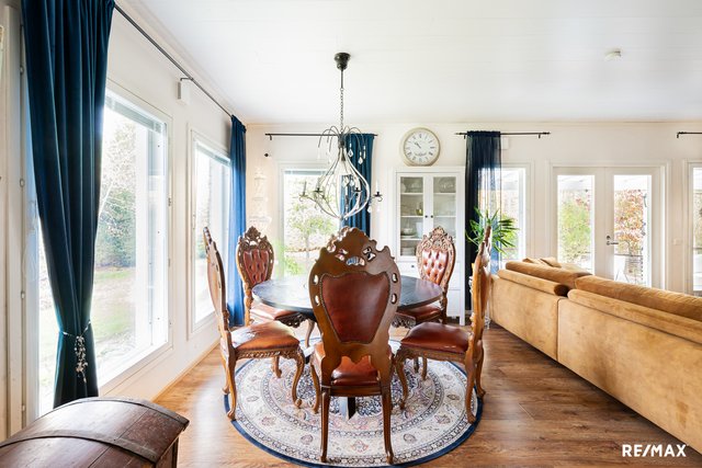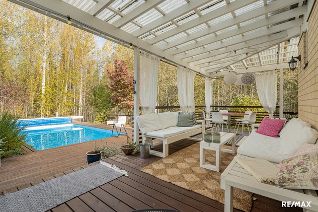 Talossa on viisi makuuhuonetta, joista yhdestä on käynti suoraan terassille. Kolmessa makuuhuoneessa on käytännölliset vaatekaapit. Avarasta olohuoneesta pääsee myös terassille, joka kutsuu rentoutumaan ja nauttimaan omasta uima-altaasta. Keittiö on varustettu laadukkailla kivitasoilla ja nykyaikaisilla kodinkoneilla, kuten induktioliesi ja erillisuuni. Uima-allasta pystyy lämmittämään edullisesti puukamiinalla ja uima-altaan mitat ovat 4x7m, syvyys 180cm ja vettä mahtuu yhteensä 40m3.