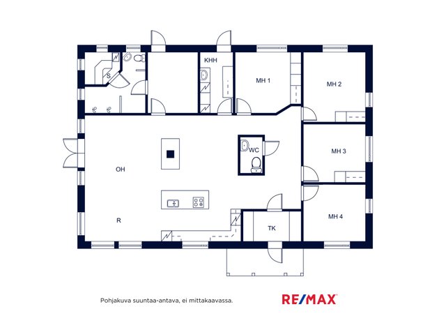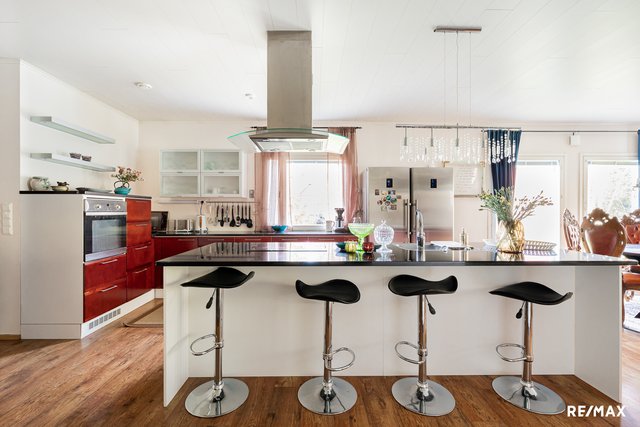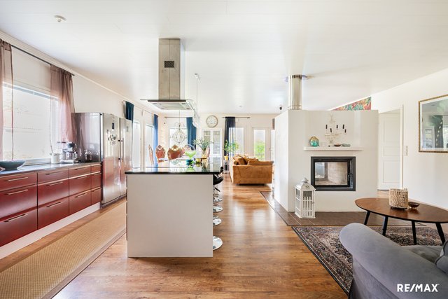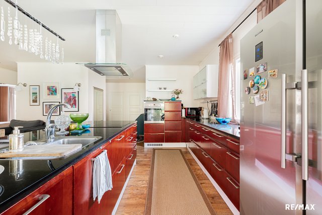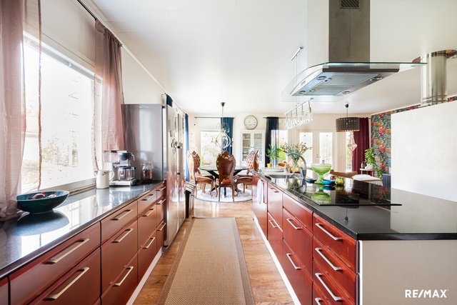 - Jääkaappi, erillinen pakastin, liesi, astianpesukone, liesituuletin, keittiösaareke, ja erillisuuni