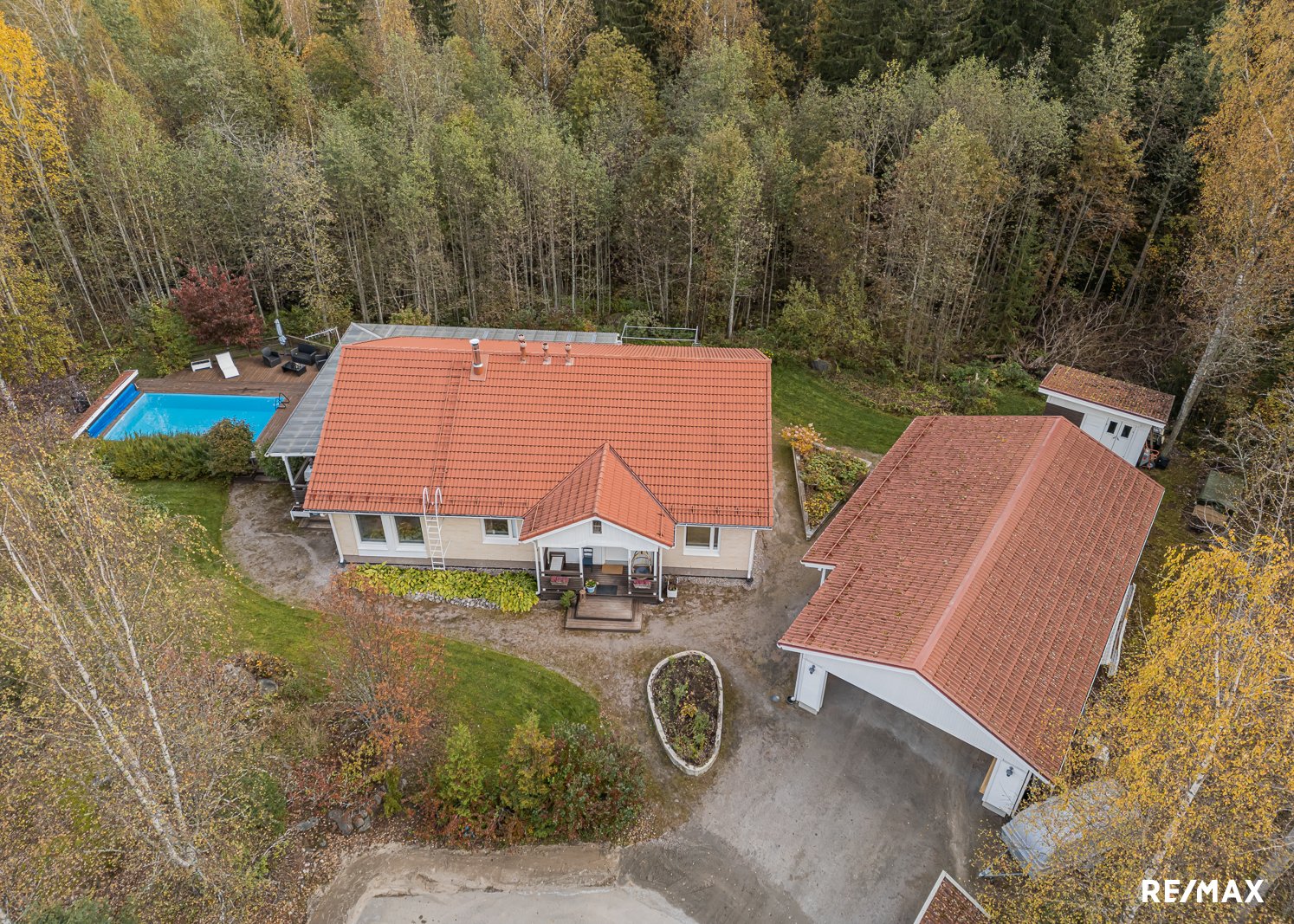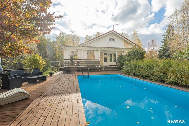 6h, k, khh, kph/s/wc, eril.wc, rt, käyttöullakko, terassi, uima-allas, 2auton katos, 2auton talli