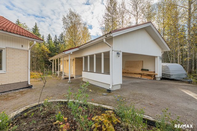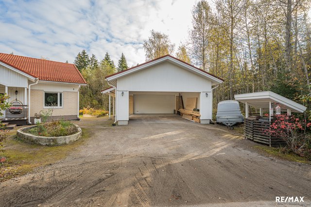 Kahden auton katos ja kahden auton autotalli tarjoavat runsaasti säilytystilaa ja suojaa ajoneuvoille. Tontti on oma ja kooltaan 1484 m², joten tilaa riittää myös ulkoiluun ja pihapeleihin. Asuinalueella on hyvät kulkuyhteydet ja palvelut ovat helposti saavutettavissa.